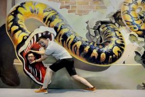 重庆3D魔幻艺术馆位于重庆市游乐园内,馆内有多幅效果逼真、画工精湛的3D作品。游客可以通过手中的摄影器材拍摄下同伴与3D画的互动效果,多种创意设计可以使游客享受到新奇、夸张、幻想、祈福、刺激的真实与虚幻的视觉大餐,男女老幼都可以融入到各个创意场景中,感受欢快愉悦的3D奇幻之旅。